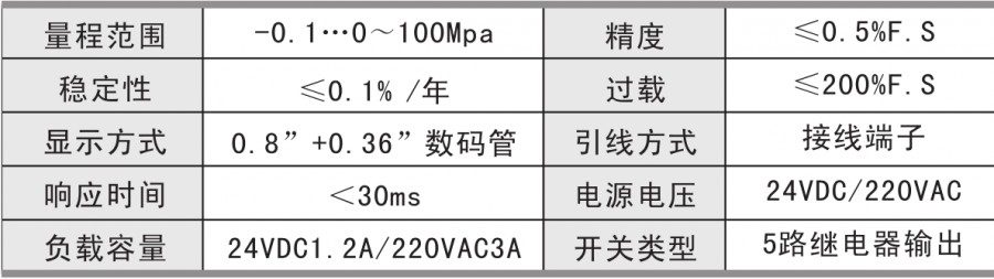 The PYK150 intelligent pressure controller is an intelligent digital pressure measurement and control product that integrates pressure measurement, display, output, and five-way control. Stainless steel joint, diffused Silicon pressure core body, whole digital circuit board, display intuitive, simple operation, safe and reliable, switch point set on site. Widely used in hydropower, tap water, petroleum, chemical, mechanical, hydraulic and other industries, the pressure of the fluid medium is measured and controlled, and the output(4-20mA) and RS485 network can be transmitted.
