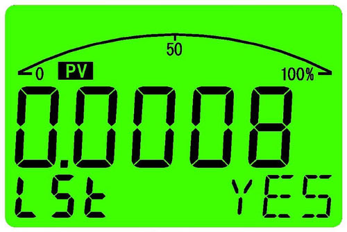 “NO” 不進(jìn)行主編清零; “YES” 進(jìn)行主編清零; “RESET” 恢復(fù)清零操作之前的零點(diǎn); 若30秒內(nèi)無任何按鍵操作,儀表將返回到測量模式。此功能禁止在生產(chǎn)過程中使用,適合在現(xiàn)場使用。 4.3.2零點(diǎn)有源遷移 零點(diǎn)有源遷移是將當(dāng)前壓力設(shè)定為變送器的零點(diǎn)輸出,對(duì)變送器施加零點(diǎn)壓力,長按“Z”鍵5秒以上,儀表將交替顯示當(dāng)前壓力值與零點(diǎn)輸出電流值,如右圖,菜單區(qū)顯示“LSt”,通過“S”鍵和“Z”鍵選擇需要進(jìn)行的操作,提示符區(qū)相應(yīng)顯示: